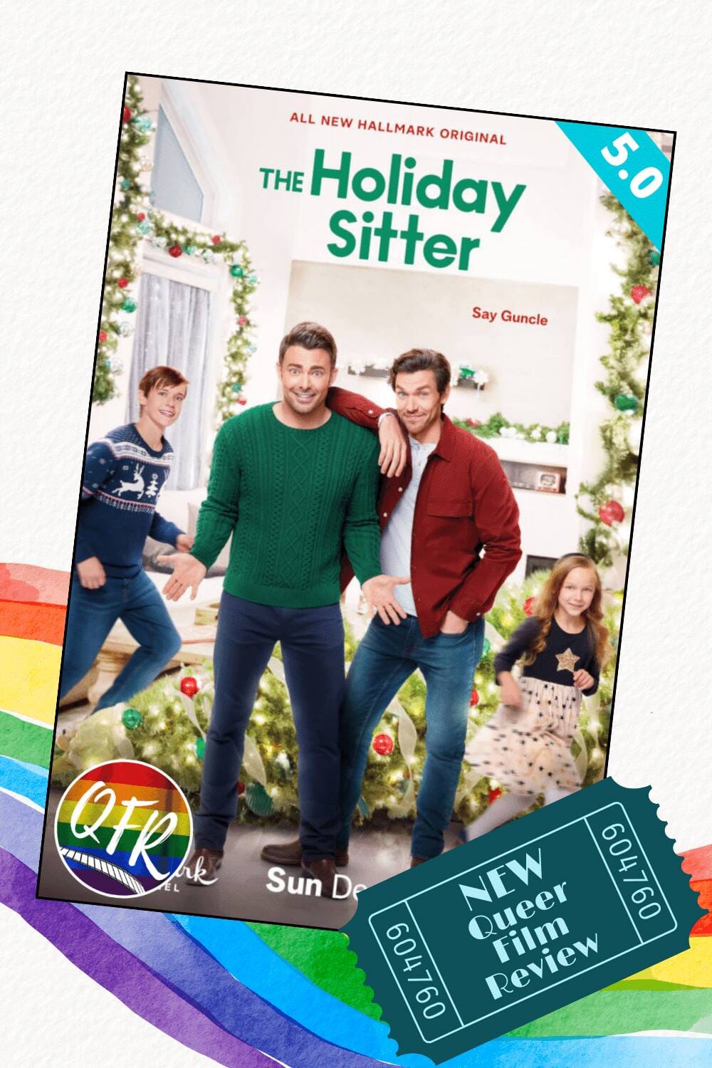 I actually have very little to say negatively about “The Holiday Sitter”. My biggest irk is the fact that Hallmark waited two entire years after announcing a gay holiday romcom before we got this wonderful film! And of course, if I really wanted to dig deep and break down things on surgical level, is this a “great” script? No. It’s certainly not an award-winning script. And because it’s a Hallmark film meant to be aired on TV with commercials, there are obvious commercial breaks built in that occasionally break the overall pace of the film.
